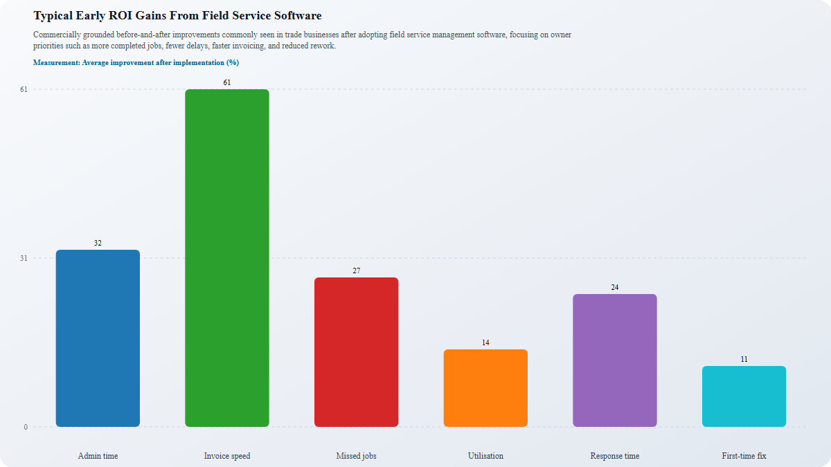For office teams, the gains show up fast: scheduling becomes quicker, job changes are easier to communicate, and the endless “where is everyone?” phone calls start to disappear. With everything tied to one system, records stay cleaner too—job notes, customer details, invoices, and timesheets are all in the right place instead of hiding in texts, clipboards, or someone’s memory after a long day.For crews in the field, the work is simply clearer. They can see what needs doing, capture photos, add notes, collect sign-offs, and update progress without the usual back-and-forth with the office. That means fewer misunderstandings, less duplicated effort, and less time playing detective on site.For managers, this is where the real control kicks in. A good field service management software setup gives visibility into job progress, team performance, and timelines as work happens—not three days later when the paperwork finally lands. That’s one of the biggest field service software benefits: less chasing, more confidence, and jobs that actually stay on track.